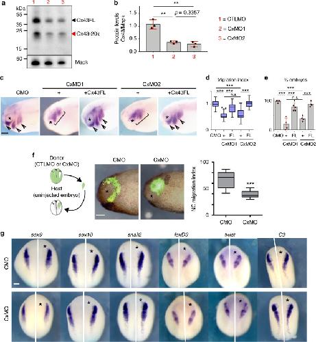 Gap junction protein Connexin-43 is a direct transcriptional regulator of N-cadherin in vivo. , Kotini M, Barriga EH , Leslie J , Gentzel M, Rauschenberger V, Schambony A , Mayor R ., Nat Commun. September 21, 2018; 9 (1): 3846.