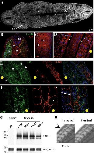 Xenopus ADAM19 is involved in neural, neural crest and muscle development. , Neuner R, Cousin H , McCusker C, Coyne M, Alfandari D ., Mech Dev. January 1, 2009; 126 (3-4): 240-55.