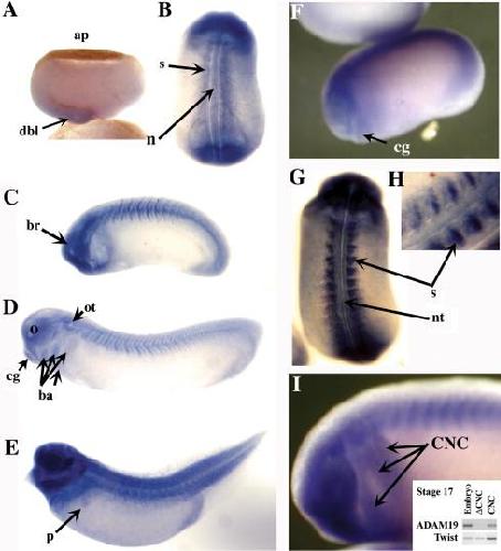 Neural crest-specific and general expression of distinct metalloprotease-disintegrins in early Xenopus laevis development. , Cai H, Krätzschmar J, Alfandari D , Hunnicutt G, Blobel CP ., Dev Biol. December 15, 1998; 204 (2): 508-24.