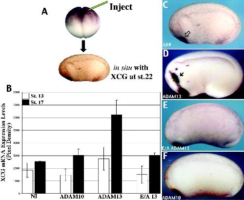 ADAM 13: a novel ADAM expressed in somitic mesoderm and neural crest cells during Xenopus laevis development. , Alfandari D , Wolfsberg TG, White JM, DeSimone DW ., Dev Biol. February 15, 1997; 182 (2): 314-30.