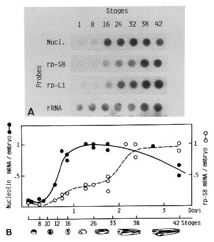 Ribosomal protein production in normal and anucleolate Xenopus embryos: regulation at the posttranscriptional and translational levels. , Pierandrei-Amaldi P, Beccari E, Bozzoni I, Amaldi F ., Cell. August 1, 1985; 42 (1): 317-23.