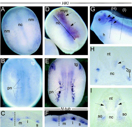 Hexokinase I is a Gli2-responsive gene expressed in the embryonic CNS., Brewster R, Ruiz i Altaba A., Mech Dev. December 1, 2000; 99 (1-2): 159-62. |