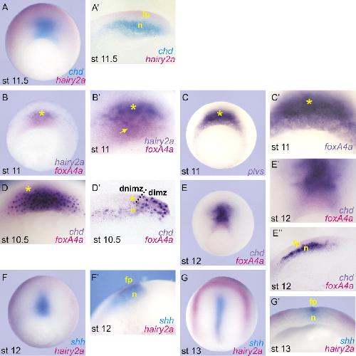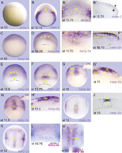 The Notch-target gene hairy2a impedes the involution of notochordal cells by promoting floor plate fates in Xenopus embryos. , López SL , Rosato-Siri MV, Franco PG, Paganelli AR, Carrasco AE ., Development. March 1, 2005; 132 (5): 1035-46.