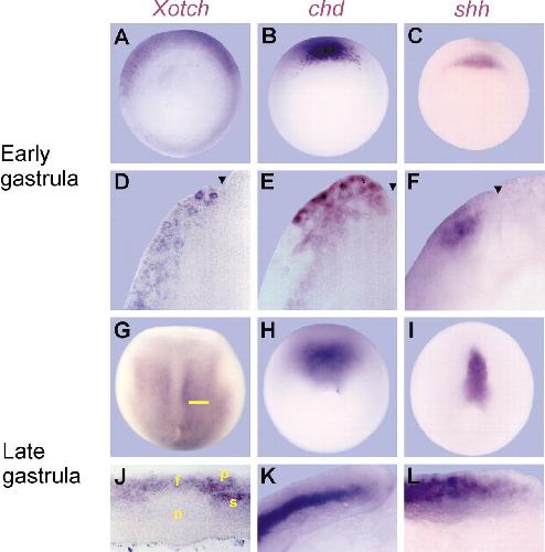Notch activates sonic hedgehog and both are involved in the specification of dorsal midline cell-fates in Xenopus. , López SL , Paganelli AR, Siri MV, Ocaña OH, Franco PG, Carrasco AE ., Development. May 1, 2003; 130 (10): 2225-38.