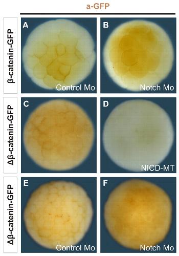Notch destabilises maternal beta-catenin and restricts dorsal- anterior development in Xenopus. , Acosta H, López SL , Revinski DR, Carrasco AE ., Development. June 1, 2011; 138 (12): 2567-79.