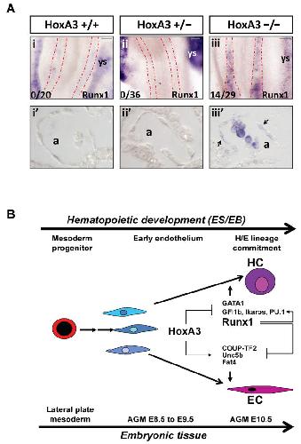 HoxA3 is an apical regulator of haemogenic endothelium. , Iacovino M, Chong D, Szatmari I, Hartweck L, Rux D, Caprioli A, Cleaver O , Kyba M., Nat Cell Biol. January 1, 2011; 13 (1): 72-8.