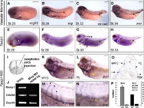 Rasip1 is required for endothelial cell motility, angiogenesis and vessel formation. , Xu K, Chong DC, Rankin SA , Zorn AM , Cleaver O ., Dev Biol. May 15, 2009; 329 (2): 269-79.