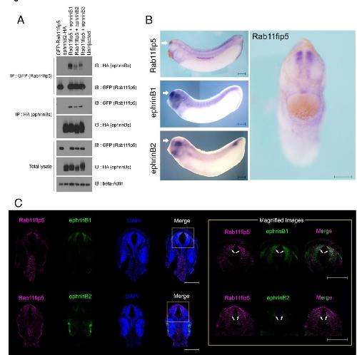 Rab11fip5 regulates telencephalon development via ephrinB1 recycling. , Yoon J , Garo J, Lee M, Sun J, Hwang YS, Daar IO ., Development. February 2, 2021; 148 (3):