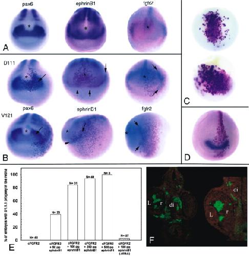 Morphogenetic movements underlying eye field formation require interactions between the FGF and ephrinB1 signaling pathways. , Moore KB , Mood K, Daar IO , Moody SA ., Dev Cell. January 1, 2004; 6 (1): 55-67.