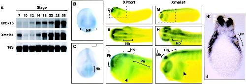 Xpbx1b and Xmeis1b play a collaborative role in hindbrain and neural crest gene expression in Xenopus embryos. , Maeda R , Ishimura A, Mood K, Park EK, Buchberg AM, Daar IO ., Proc Natl Acad Sci U S A. April 16, 2002; 99 (8): 5448-53.
