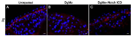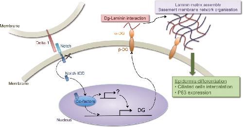 Dystroglycan is involved in skin morphogenesis downstream of the Notch signaling pathway. , Sirour C, Hidalgo M, Bello V, Buisson N, Darribère T , Moreau N., Mol Biol Cell. August 15, 2011; 22 (16): 2957-69.