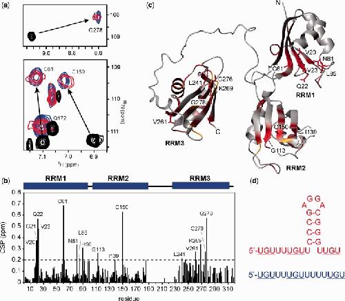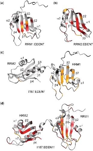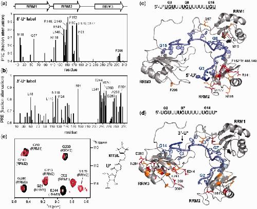 Sequence determinants for the tandem recognition of UGU and CUG rich RNA elements by the two N--terminal RRMs of CELF1. , Edwards J, Malaurie E, Kondrashov A, Long J, de Moor CH , Searle MS, Emsley J., Nucleic Acids Res. October 1, 2011; 39 (19): 8638-50.