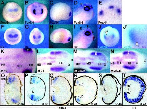 Expression of the forkhead transcription factor FoxN4 in progenitor cells in the developing Xenopus laevis retina and brain. , Kelly LE, Nekkalapudi S, El-Hodiri HM ., Gene Expr Patterns. January 1, 2007; 7 (3): 233-8.