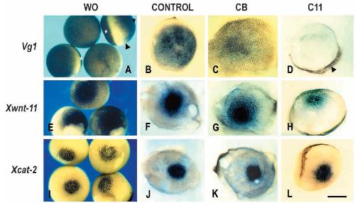 Animal and vegetal pole cells of early Xenopus embryos respond differently to maternal dorsal determinants: implications for the patterning of the organiser. , Darras S, Marikawa Y, Elinson RP , Lemaire P ., Development. November 1, 1997; 124 (21): 4275-86.