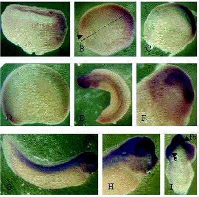 The circadian gene Clock is restricted to the anterior neural plate early in development and is regulated by the neural inducer noggin and the transcription factor Otx2. , Green CB , Durston AJ , Morgan R., Mech Dev. March 1, 2001; 101 (1-2): 105-10.
