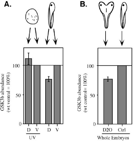 Dorsal downregulation of GSK3beta by a non-Wnt-like mechanism is an early molecular consequence of cortical rotation in early Xenopus embryos. , Dominguez I , Green JB ., Development. February 1, 2000; 127 (4): 861-8.