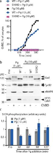 The phosphorylation of ARPP19 by Greatwall renders the auto-amplification of MPF independently of PKA in Xenopus oocytes. , Dupré A , Buffin E, Roustan C, Nairn AC, Jessus C , Haccard O ., J Cell Sci. September 1, 2013; 126 (Pt 17): 3916-26.