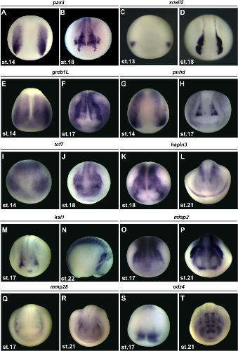 A molecular atlas of the developing ectoderm defines neural, neural crest, placode, and nonneural progenitor identity in vertebrates. , Plouhinec JL, Medina-Ruiz S, Borday C, Bernard E, Vert JP, Eisen MB, Harland RM , Monsoro-Burq AH ., PLoS Biol. October 19, 2017; 15 (10): e2004045.