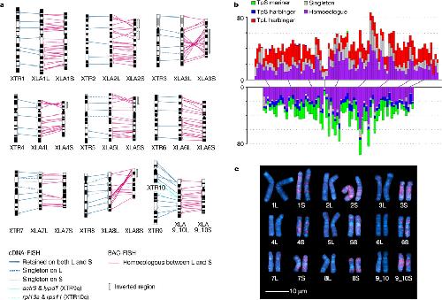 Genome evolution in the allotetraploid frog Xenopus laevis. , Session AM , Uno Y , Kwon T , Chapman JA, Toyoda A, Takahashi S , Fukui A , Hikosaka A , Suzuki A , Kondo M, van Heeringen SJ, Quigley I , Heinz S, Ogino H , Ochi H , Hellsten U, Lyons JB, Simakov O, Putnam N, Stites J, Kuroki Y, Tanaka T, Michiue T , Watanabe M, Bogdanovic O, Lister R, Georgiou G, Paranjpe SS, van Kruijsbergen I, Shu S, Carlson J, Kinoshita T, Ohta Y, Mawaribuchi S, Jenkins J, Grimwood J, Schmutz J, Mitros T, Mozaffari SV, Suzuki Y, Haramoto Y, Yamamoto TS , Takagi C, Heald R , Miller K, Haudenschild C, Kitzman J , Nakayama T , Izutsu Y , Robert J , Fortriede J , Burns K , Lotay V , Karimi K , Yasuoka Y , Dichmann DS , Flajnik MF , Houston DW , Shendure J, DuPasquier L , Vize PD , Zorn AM , Ito M, Marcotte EM , Wallingford JB , Ito Y, Asashima M , Ueno N , Matsuda Y, Veenstra GJ , Fujiyama A, Harland RM , Taira M , Rokhsar DS ., Nature. October 20, 2016; 538 (7625): 336-343.