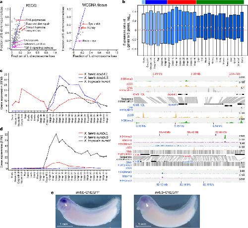 Conserved chromatin and repetitive patterns reveal slow genome evolution in frogs. , Bredeson JV, Mudd AB, Medina-Ruiz S, Mitros T, Smith OK, Miller KE, Lyons JB, Batra SS, Park J , Berkoff KC, Plott C, Grimwood J, Schmutz J, Aguirre-Figueroa G, Khokha MK , Lane M, Philipp I, Laslo M, Hanken J , Kerdivel G, Buisine N , Sachs LM , Buchholz DR , Kwon T , Smith-Parker H, Gridi-Papp M, Ryan MJ, Denton RD, Malone JH, Wallingford JB , Straight AF , Heald R , Hockemeyer D, Harland RM , Rokhsar DS ., Nat Commun. January 17, 2024; 15 (1): 579.
