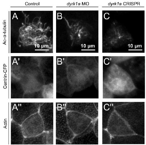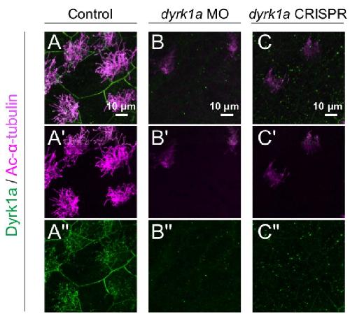 The neurodevelopmental disorder risk gene DYRK1A is required for ciliogenesis and control of brain size in Xenopus embryos. , Willsey HR , Xu Y , Everitt A, Dea J, Exner CRT, Willsey AJ, State MW , Harland RM ., Development. June 22, 2020; 147 (21):