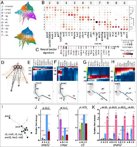A time-resolved single-cell roadmap of the logic driving anterior neural crest diversification from neural border to migration stages. , Kotov A, Seal S, Alkobtawi M, Kappès V, Ruiz SM, Arbès H, Harland RM , Peshkin L , Monsoro-Burq AH ., Proc Natl Acad Sci U S A. May 7, 2024; 121 (19): e2311685121.