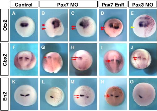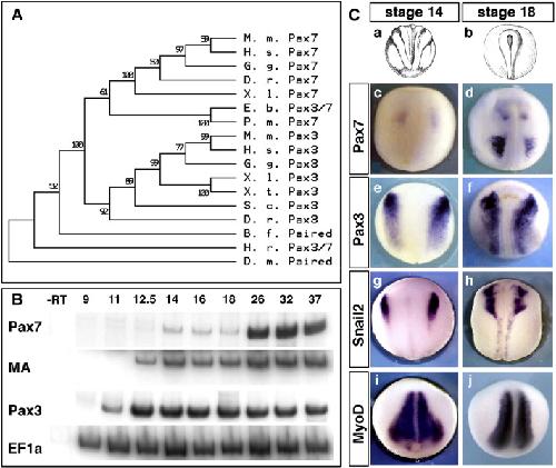 The Pax3 and Pax7 paralogs cooperate in neural and neural crest patterning using distinct molecular mechanisms, in Xenopus laevis embryos. , Maczkowiak F, Matéos S, Wang E, Roche D, Harland R , Monsoro-Burq AH ., Dev Biol. April 15, 2010; 340 (2): 381-96.