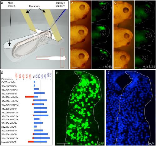 Electroporation of cDNA/Morpholinos to targeted areas of embryonic CNS in Xenopus., Falk J, Drinjakovic J, Leung KM, Dwivedy A, Regan AG, Piper M, Holt CE., BMC Dev Biol. September 27, 2007; 7 107. |