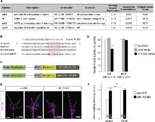 miR-182 Regulates Slit2-Mediated Axon Guidance by Modulating the Local Translation of a Specific mRNA., Bellon A, Iyer A, Bridi S, Lee FCY, Ovando-Vázquez C, Corradi E, Longhi S, Roccuzzo M, Strohbuecker S, Naik S, Sarkies P, Miska E, Abreu-Goodger C, Holt CE, Baudet ML., Cell Rep. January 31, 2017; 18 (5): 1171-1186. |