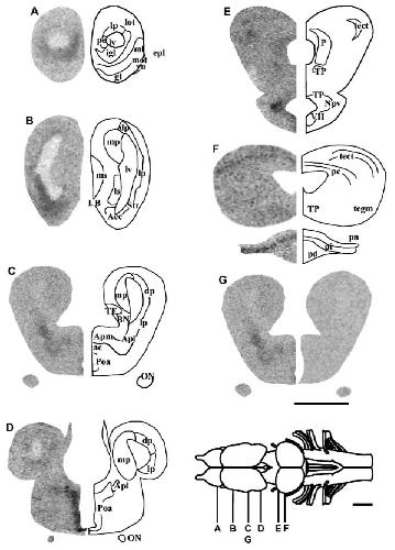 In situ hybridization localization of TRH precursor and TRH receptor mRNAs in the brain and pituitary of Xenopus laevis. , Galas L, Bidaud I, Bulant M, Jenks BG , Ouwens DT, Jégou S, Ladram A, Roubos EW , Nicolas P, Tonon MC, Vaudry H., Ann N Y Acad Sci. April 1, 2005; 1040 95-105.