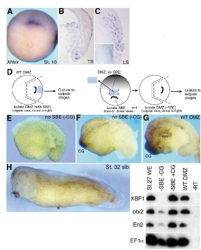 Xhex-expressing endodermal tissues are essential for anterior patterning in Xenopus. , Smithers LE , Jones CM ., Mech Dev. December 1, 2002; 119 (2): 191-200.
