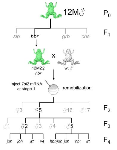 Forward genetic screens in Xenopus using transposon-mediated insertional mutagenesis. , Yergeau DA, Kelley CM , Zhu H, Kuliyev E, Mead PE ., Methods Mol Biol. January 1, 2012; 917 111-27.