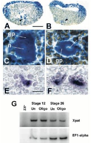 Xenopus Xpat protein is a major component of germ plasm and may function in its organisation and positioning. , Machado RJ, Moore W, Hames R, Houliston E , Chang P, King ML , Woodland HR ., Dev Biol. November 15, 2005; 287 (2): 289-300.