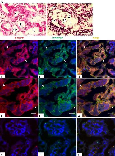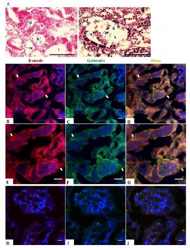 The interconnection between cytokeratin and cell membrane-bound β-catenin in Sertoli cells derived from juvenile Xenopus tropicalis testes. , Nguyen TMX, Vegrichtova M, Tlapakova T , Krulova M, Krylov V ., Biol Open. December 20, 2019; 8 (12):