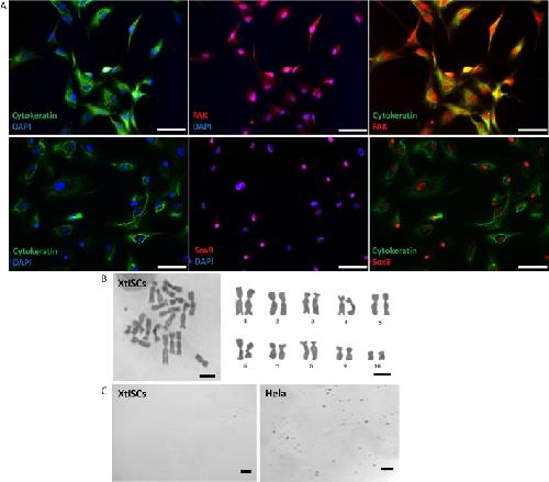 Epithelial-Mesenchymal Transition Promotes the Differentiation Potential of Xenopus tropicalis Immature Sertoli Cells. , Nguyen TMX, Vegrichtova M, Tlapakova T , Krulova M, Krylov V ., Stem Cells Int. May 5, 2019; 2019 8387478.