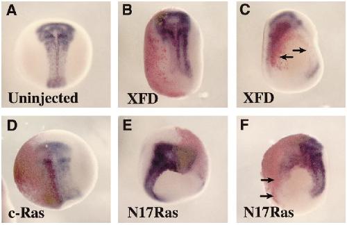 Ras-mediated FGF signaling is required for the formation of posterior but not anterior neural tissue in Xenopus laevis., Ribisi S, Mariani FV, Aamar E, Lamb TM, Frank D, Harland RM., Dev Biol. November 1, 2000; 227 (1): 183-96. |