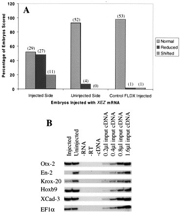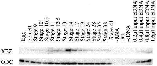 Xenopus Enhancer of Zeste ( XEZ); an anteriorly restricted polycomb gene with a role in neural patterning. , Barnett MW, Seville RA, Nijjar S, Old RW , Jones EA ., Mech Dev. April 1, 2001; 102 (1-2): 157-67.