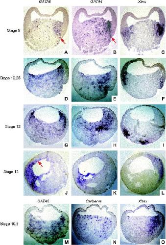 Over-expression of GATA-6 in Xenopus embryos blocks differentiation of heart precursors. , Gove C, Walmsley M, Nijjar S, Bertwistle D, Guille M , Partington G, Bomford A, Patient R ., EMBO J. January 15, 1997; 16 (2): 355-68.