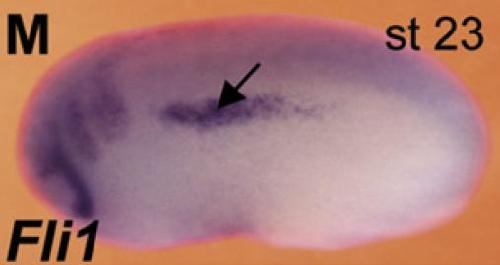 Fli1 acts at the top of the transcriptional network driving blood and endothelial development. , Liu F, Walmsley M, Rodaway A, Patient R ., Curr Biol. August 26, 2008; 18 (16): 1234-40.