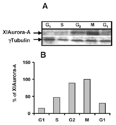 The non-catalytic domain of the Xenopus laevis auroraA kinase localises the protein to the centrosome. , Giet R, Prigent C ., J Cell Sci. June 1, 2001; 114 (Pt 11): 2095-104.
