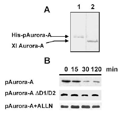 The D-Box-activating domain (DAD) is a new proteolysis signal that stimulates the silent D-Box sequence of Aurora-A. , Castro A, Vigneron S, Bernis C, Labbé JC, Prigent C , Lorca T., EMBO Rep. December 1, 2002; 3 (12): 1209-14.