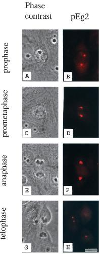 The Xenopus protein kinase pEg2 associates with the centrosome in a cell cycle-dependent manner, binds to the spindle microtubules and is involved in bipolar mitotic spindle assembly. , Roghi C, Giet R, Uzbekov R, Morin N , Chartrain I, Le Guellec R, Couturier A, Dorée M, Philippe M, Prigent C ., J Cell Sci. March 1, 1998; 111 ( Pt 5) 557-72.