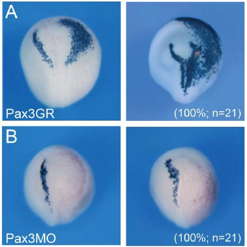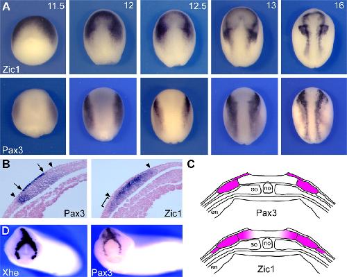 The activity of Pax3 and Zic1 regulates three distinct cell fates at the neural plate border. , Hong CS , Saint-Jeannet JP ., Mol Biol Cell. June 1, 2007; 18 (6): 2192-202.