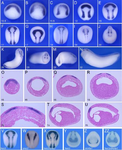 The b-HLH transcription factor Hes3 participates in neural plate border formation by interfering with Wnt/ β-catenin signaling. , Hong CS , Saint-Jeannet JP ., Dev Biol. October 1, 2018; 442 (1): 162-172.