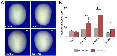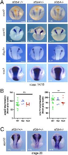 Sf3b4-depleted Xenopus embryos: A model to study the pathogenesis of craniofacial defects in Nager syndrome. , Devotta A, Juraver-Geslin H , Gonzalez JA, Hong CS , Saint-Jeannet JP ., Dev Biol. July 15, 2016; 415 (2): 371-382.