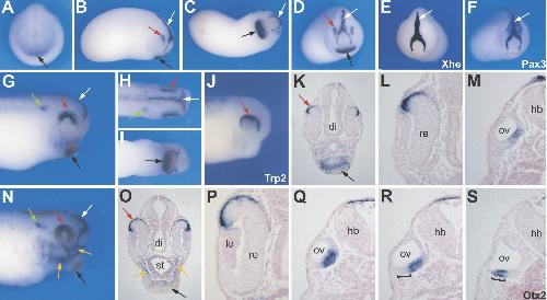 Specification of the otic placode depends on Sox9 function in Xenopus. , Saint-Germain N , Lee YH , Zhang Y , Sargent TD , Saint-Jeannet JP ., Development. April 1, 2004; 131 (8): 1755-63.