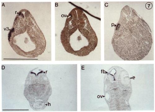 A Xenopus distal-less gene in transgenic mice: conserved regulation in distal limb epidermis and other sites of epithelial-mesenchymal interaction. , Morasso MI, Mahon KA, Sargent TD ., Proc Natl Acad Sci U S A. April 25, 1995; 92 (9): 3968-72.