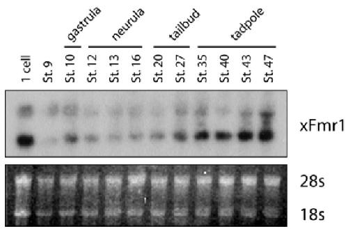 Developmental expression of Xenopus fragile X mental retardation-1 gene. , Lim JH, Luo T, Sargent TD , Fallon JR., Int J Dev Biol. January 1, 2005; 49 (8): 981-4.