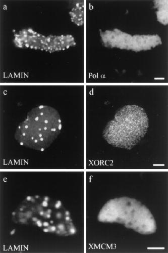 Nuclei that lack a lamina accumulate karyophilic proteins and assemble a nuclear matrix. , Jenkins H, Hölman T, Lyon C, Lane B, Stick R , Hutchison C., J Cell Sci. September 1, 1993; 106 ( Pt 1) 275-85.