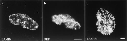 Disruption of nuclear lamin organization alters the distribution of replication factors and inhibits DNA synthesis. , Spann TP, Moir RD, Goldman AE, Stick R , Goldman RD., J Cell Biol. March 24, 1997; 136 (6): 1201-12.